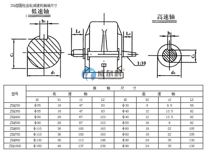 JZQ齒輪減速機(jī)應(yīng)用范圍及結(jié)構(gòu)概況 1、應(yīng)用范圍及優(yōu)點(diǎn): 本機(jī)廣泛應(yīng)用于各種起重、運(yùn)輸、礦山機(jī)械及其它各種機(jī)械中作減速之用。其聯(lián)動(dòng)方式,可用聯(lián)軸器直接聯(lián)動(dòng),也可用三角皮帶撓性聯(lián)動(dòng)。 本機(jī)通用性和互換性強(qiáng),維修簡(jiǎn)單,效率系數(shù)為0.94,具有起動(dòng)阻力小,運(yùn)動(dòng)靈活等優(yōu)點(diǎn)。 2、結(jié)構(gòu)概況及主要零部件: 本機(jī)結(jié)構(gòu)型式為兩級(jí)三軸圓柱斜齒水平分割全封式。潤(rùn)滑油盛于減速機(jī)之內(nèi)部,在主動(dòng)軸和中間軸上設(shè)有擋油板,各軸支點(diǎn)均用滾動(dòng)軸承,其軸向間隙,可用內(nèi)部調(diào)整環(huán)調(diào)整之,本機(jī)上部有一檢查蓋,下部有油標(biāo)指針和排廢油用的油塞。